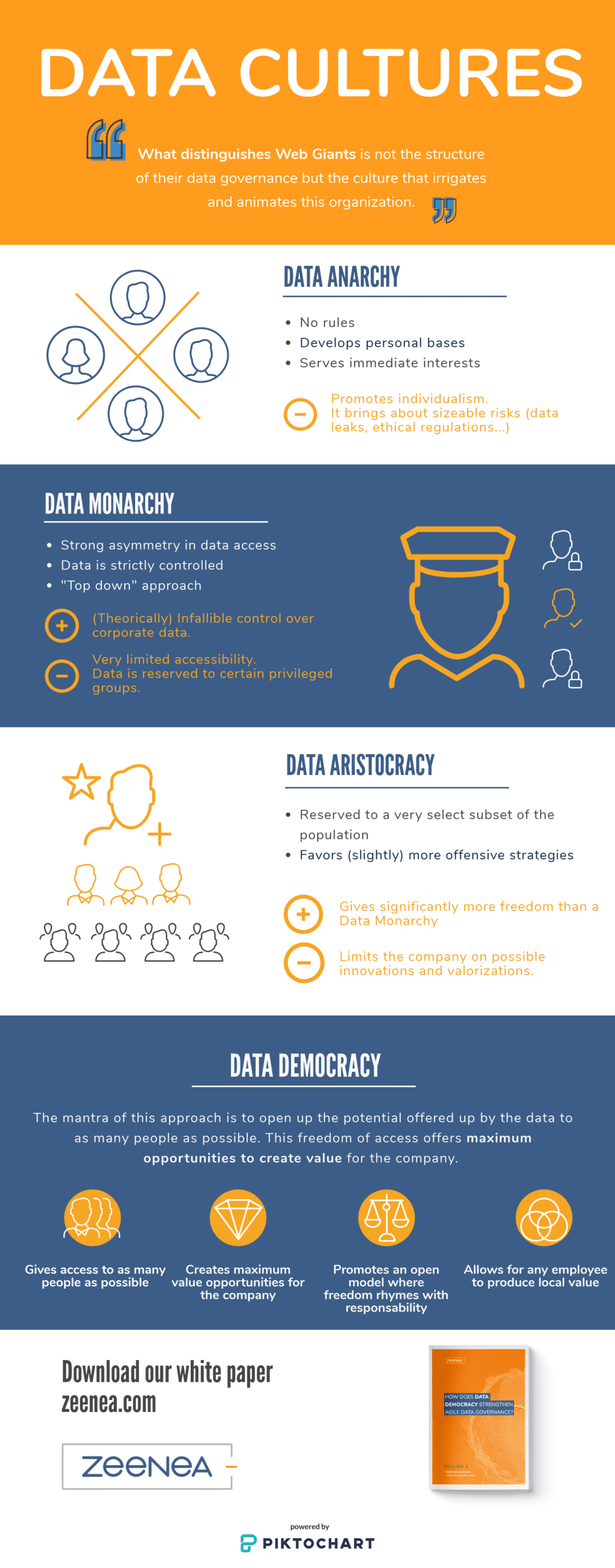Un bon moyen de mieux comprendre la Data Democracy est de la comparer à d’autres cultures de la donnée. Voici les principales cultures data: